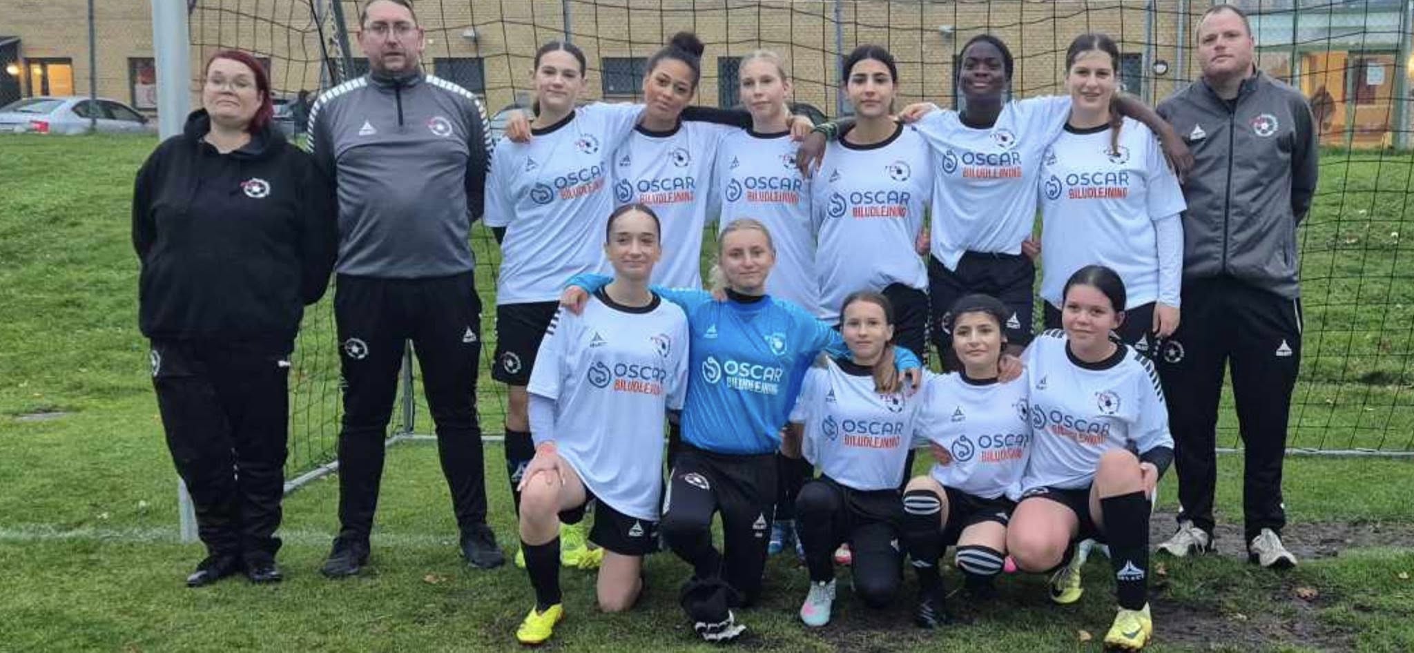 Pigerne stillede op i deres nye flotte spilletrøjer med Oscar Biludlejning som ny sponsor, og de skal have en stor tak for støtten.