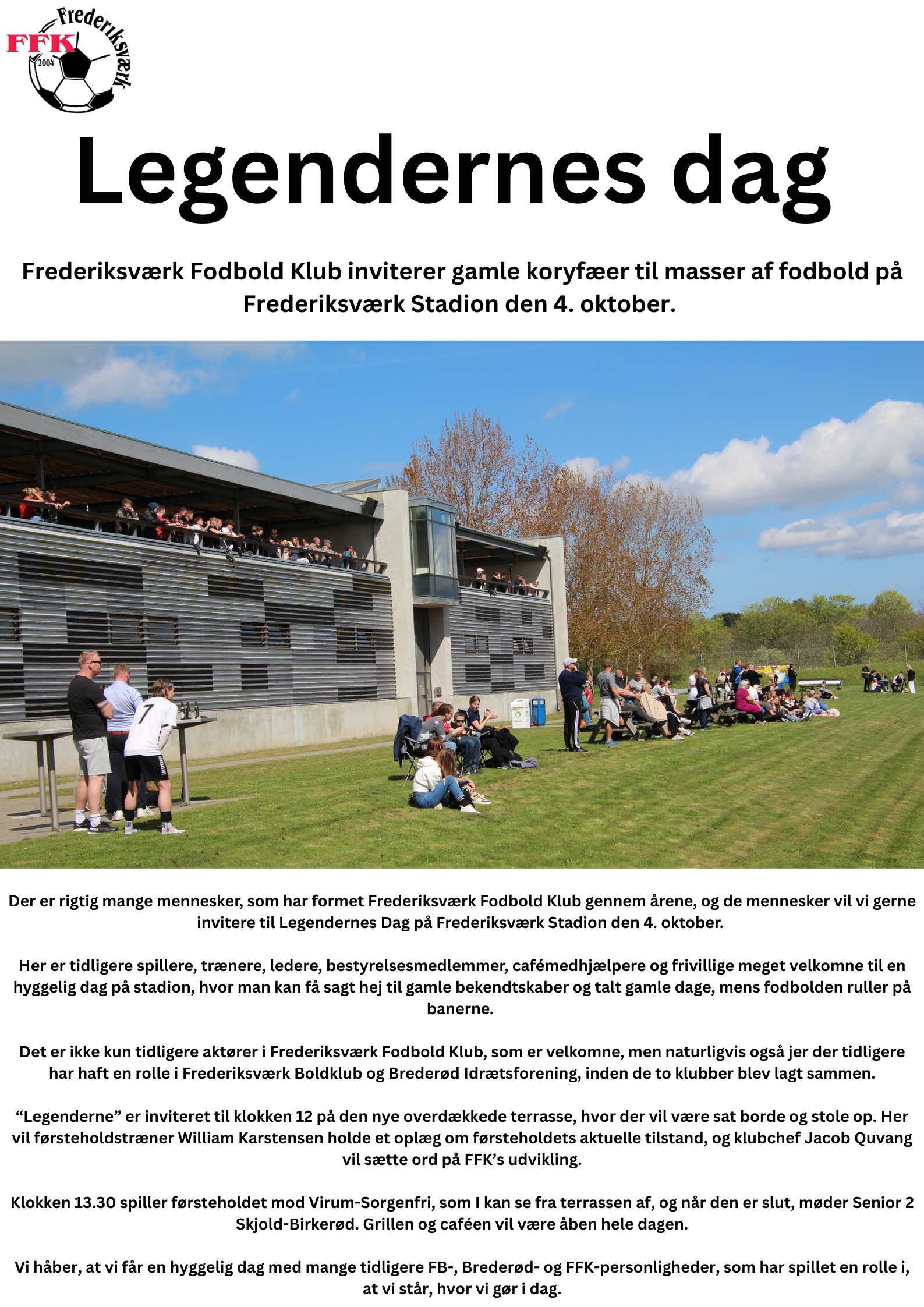 Der er rigtig mange mennesker, som har formet Frederiksværk Fodbold Klub gennem årene, og de mennesker vil vi gerne invitere til Legendernes Dag på Frederiksværk Stadion den 4. oktober.