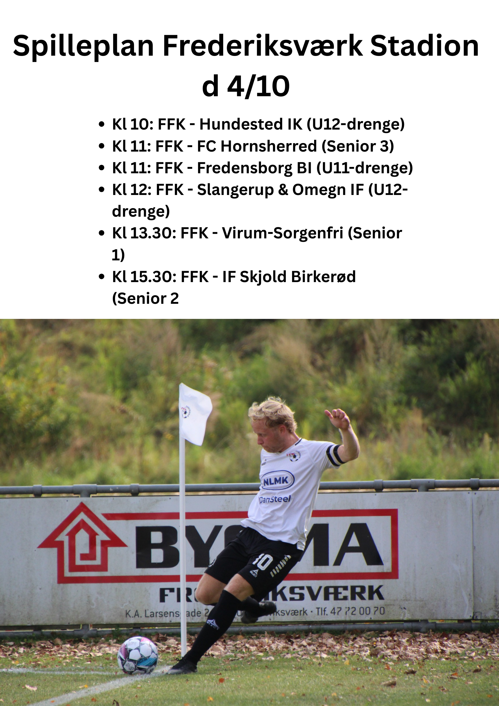 Klokken 13.30 spiller førsteholdet mod Virum-Sorgenfri, som I kan se fra terrassen af, og når den er slut, møder Senior 2 Skjold-Birkerød. Grillen og caféen vil være åben hele dagen.